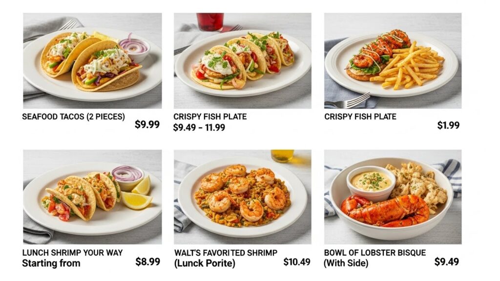 | Hand-Breaded Shrimp | $9.99 – $11.99 |